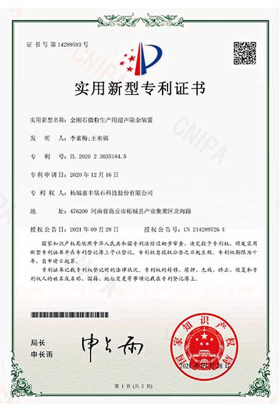 2021年,被河南省科技廳認定為河南省瞪羚企業(yè)。金剛石微納粉體河南省工程實驗室、河南省亞微米超硬材料粉體工程技術研究中心建設依托單位、設立了河南省微納米金剛石粉體材料院士工作站及河南省博士后研發(fā)基地。